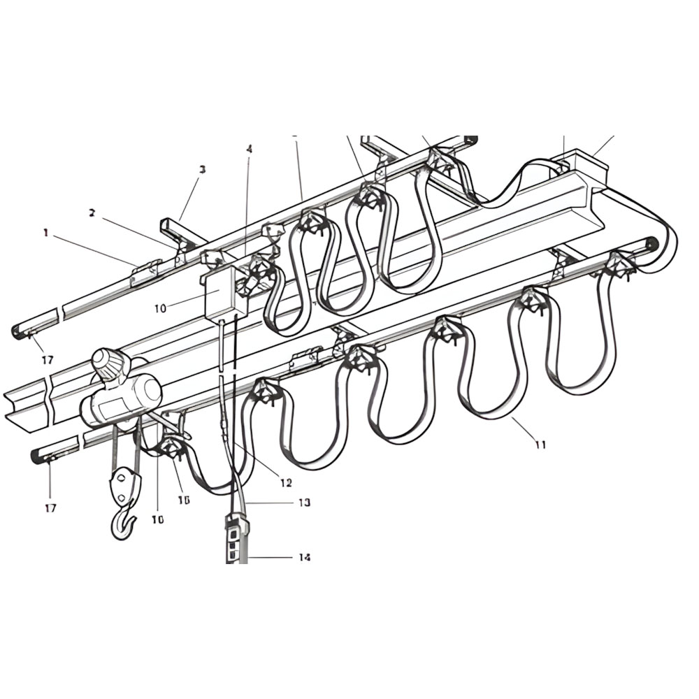 The Golden United Global Crane Accessories 6 Festoon System is a robust and reliable solution designed to manage and protect cables and hoses on various crane systems. This high-quality festoon system ensures smooth and uninterrupted power and control to moving machinery, enhancing operational efficiency and safety. Its durable construction and intelligent design make it suitable for a wide range of industrial applications, providing long-lasting performance even in demanding environments.