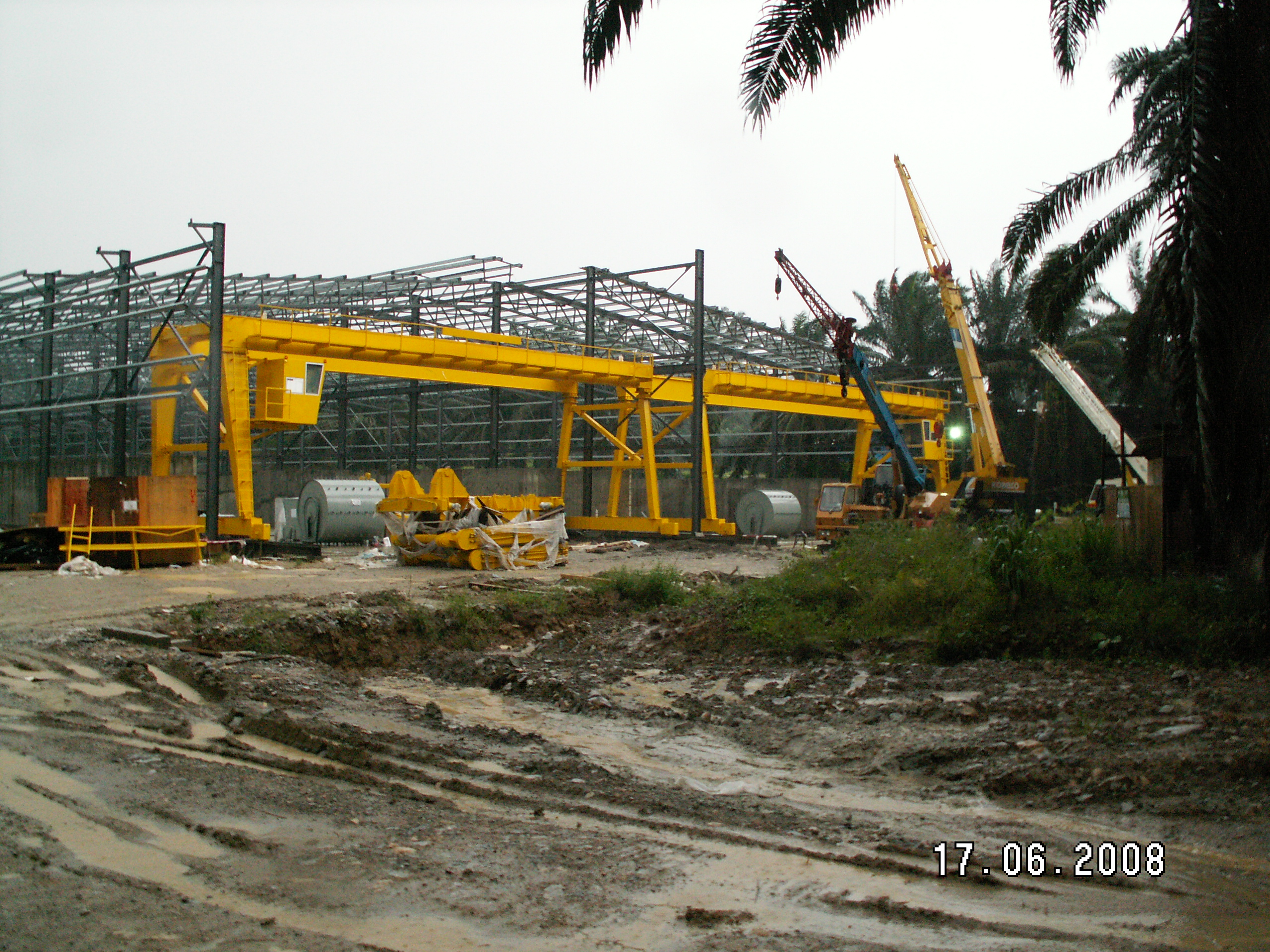 lifting and moving heavy loads within a confined area, typically found in shipyards and industrial settings.