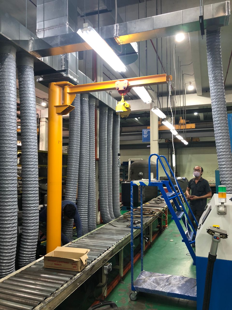 Slewing jib cranes are designed for lifting and moving materials within a limited, circular area. They typically consist of a horizontal jib (or boom) that extends from a vertical mast or pillar, allowing the jib to rotate (slew) around the mast. This functionality makes them ideal for localized lifting tasks in workshops, assembly lines, or loading docks, where materials need to be moved to and from specific points within a defined radius.